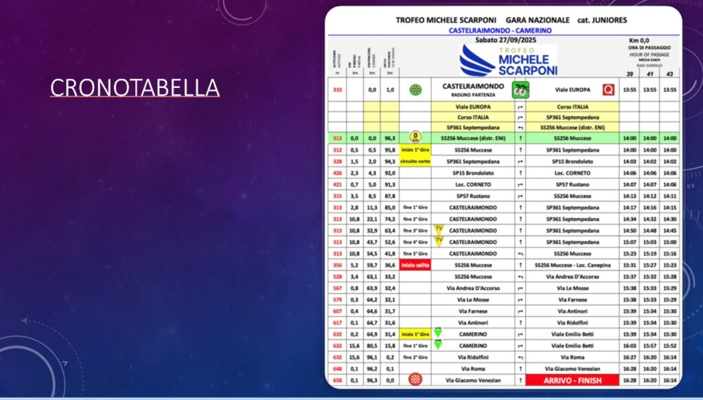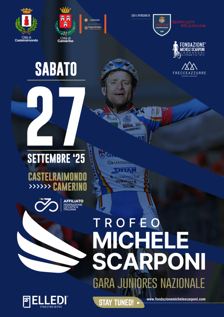 Il Trofeo, in programma sabato 27 settembre 2025, è una gara nazionale di ciclismo Juniores maschile organizzata dall’ASD AVIS Frecce Azzurre di Camerino, con il patrocinio dei Comuni di Castelraimondo e Camerino, della Fondazione Michele Scarponi e dell’Università di Camerino